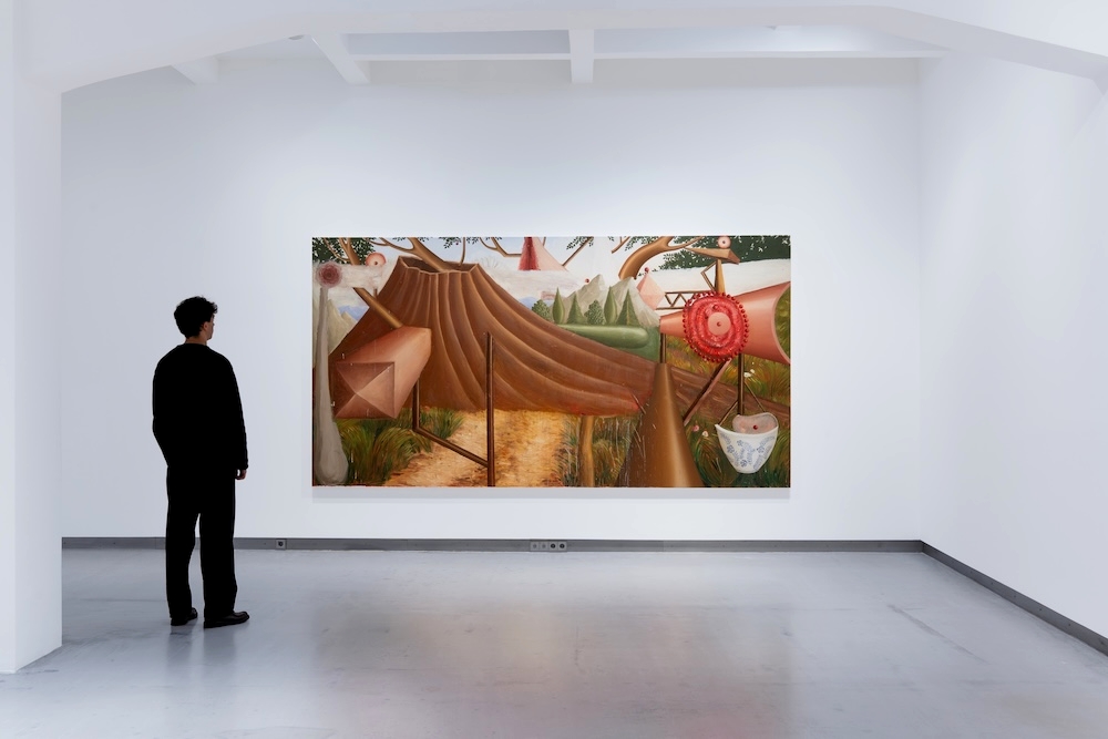 Objetos y volúmenes (y su composición sin jerarquías) es lo que guía al espectador hacia una inmersión natural en las escenas que Cugusi plantea. Una mezcla de frondosidad, jarrones, cerámica, mesas y elementos textiles (sin olvidarnos de la espiral peluda), que no siempre resultan bonitos (a Cugusi las pinturas bonitas ni fu ni fa), pero sí que resultan intrigantes y cargados de una bucólica tensión que hipnotiza.